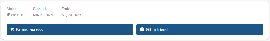 To extend access, go to your Dashboard -> Billing and then click “Extend Access”. From the next popup window, you will be able to choose from the available extension packages.
