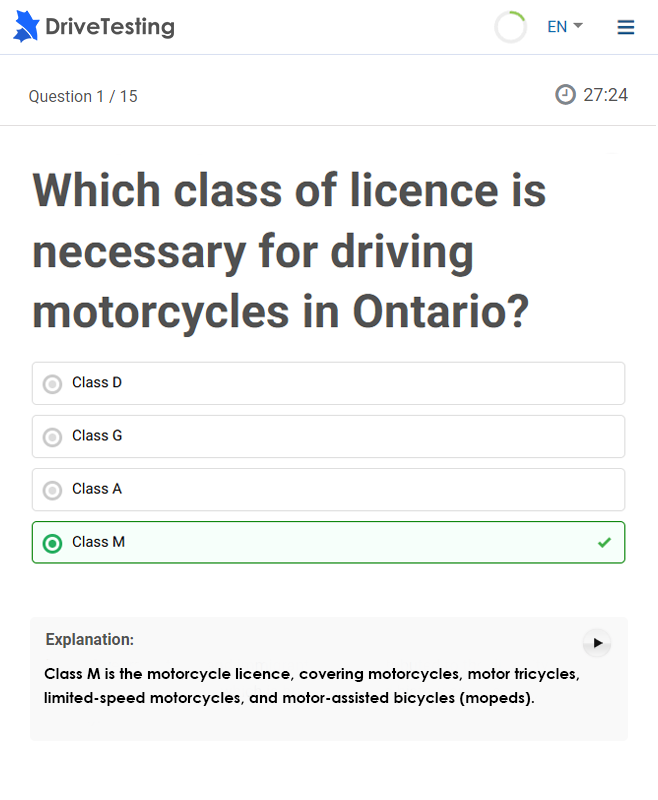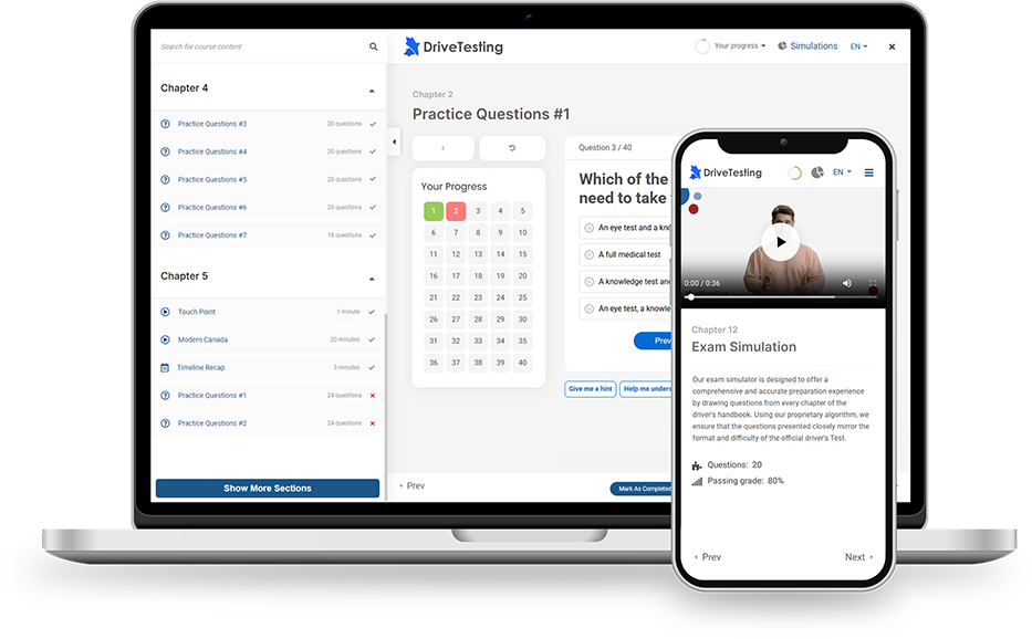 Obtaining your Canadian Driver’s License can be daunting, especially if you’ve been on a prolonged path. DriveTesting Premium simplifies the process by providing access to a vast library of Test Questions, Test Simulations and must-have tools. Our test resources are designed to mimic the actual test environment, giving you a thorough understanding of the Driver’s Handbook to help you ace the test on your first attempt.