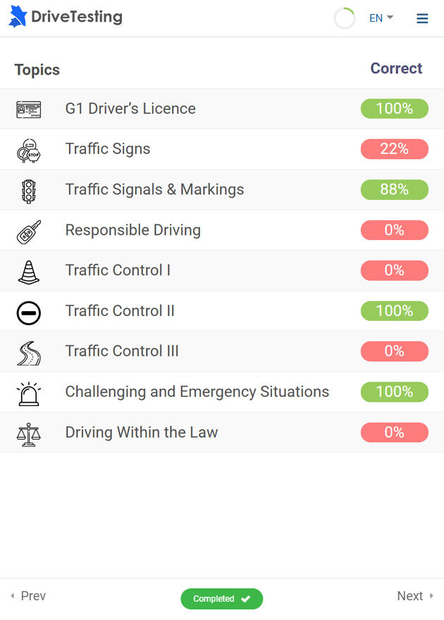 Preparing on your own can be challenging as there is just so much to remember. Our “Learn-Quiz-Learn” framework is a proven learning framework which has helped thousands of learners in Canada pass their Driver’s Tests.